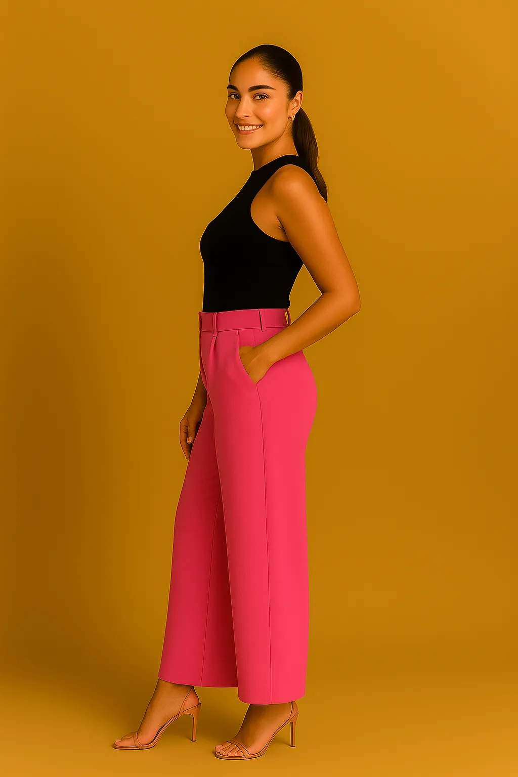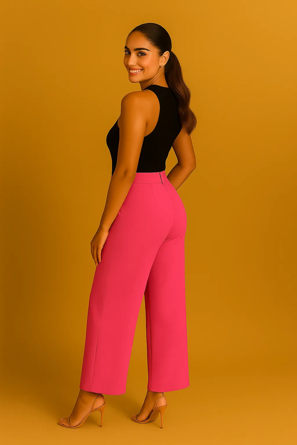 Flamingo Flush Trousers by Bold & Bright: These stunning trousers displayed in vivid flamingo pink offer a burst of exuberance to any wardrobe.